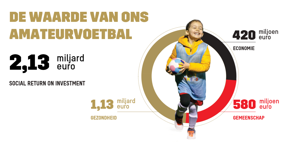 Het Belgische amateurvoetbal levert de maatschappij minstens 2,1 miljard euro per jaar op, zo blijkt uit een wetenschappelijk gevalideerde SROI (Social Return On Investment)-studie die de KBVB deed in samenwerking met UEFA, de WHO en tal van academici.